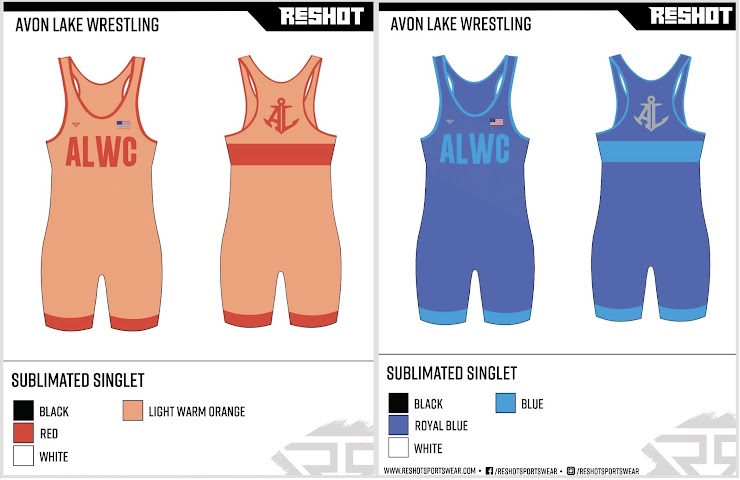 Special order! The Avon Lake Wrestling Club has partnered with Reshot to offer Red and Blue freestyle singlet sets, which meet the requirements to compete in USA Wrestling events. Available to Avon Lake wrestlers of all ages in men’s and women’s cuts. For sale at cost, which is $60.00 per set.